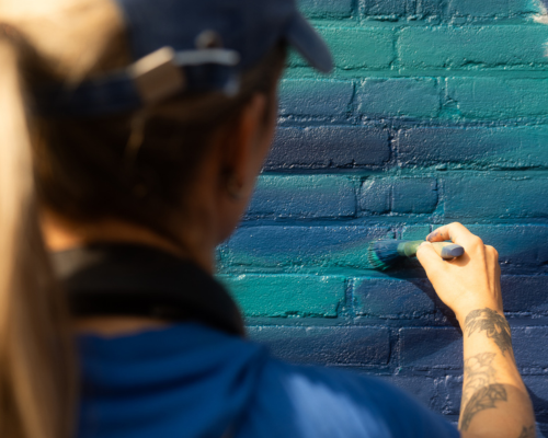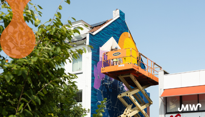 Vrijwilligers geven hun tijd, energie en hart aan anderen Γ©n aan de stad. De nieuwe muurschildering is een zichtbaar βdankjewelβ voor al deze mensen. Er is gekozen voor het ontwerp van kunstenaar Marloes de Kiewit!