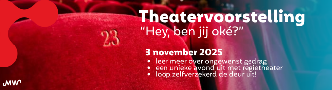 Zet ook vast 3 november in je agenda! Je geniet dan de voorstelling "Hey, ben jij oké?" Een humoristische én herkenbare avond regietheater. Onderaan deze nieuwsbrief lees je er meer over.